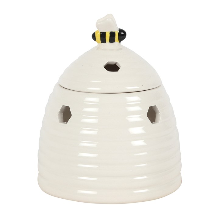 This ceramic oil burner comes in the shape of an adorable white beehive with a sweet bee on the lid. Honeycomb-shaped cutouts finish off this unique style. Recommended for use with fragrance oil diluted with water. Always remove the lid whilst in use. Product Dimensions: H14cm x W11cm x D11cm Packaged Dimensions: H16.5cm x W14cm x D14cm