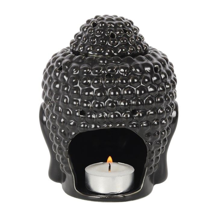 Matte black Buddha head oil burner. This item can also be used as a wax melt burner however it is advisable to consider the size and depth of the bowl when adding wax to ensure it will not overrun the edges when melted. Product Dimensions: H14cm x W9cm x D9cm Packaged Dimensions: H15cm x W11cm x D11cm