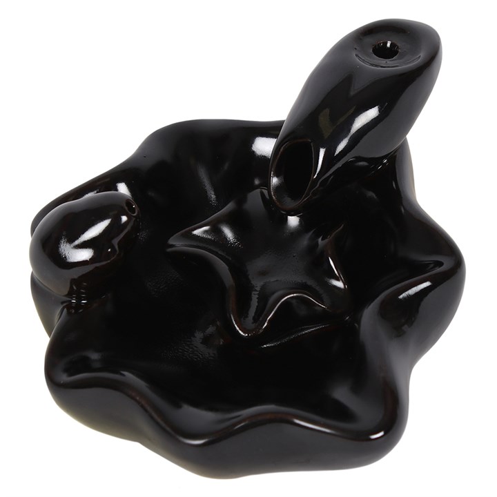 A stunningly simple black ceramic backflow incense burner in a pool to pool design.When the cone is lit the smoke from the cone pours downwards into the small pool then cascades in to the larger pool in a mesmerising waterfall effect. Beautiful to watch. For best effects burn indoors in an area away from any sudden air movements. Please note that after burning it is normal for a light oily residue to appear on the oil burner, for this reason we recommend protecting any furniture it is placed upon suitably. The residue can be easily wiped off the burner with a damp cloth. Please exercise caution when burning incense. Only backflow incense cones should be used with this product ? standard incense cones will not create the desired effect. It is normal for cones to take up to 10 minutes after being lit to start creating the smoking/mist effect. We supply a selection of backflow incense cones in a variety of scents. Product Dimensions: H6cm x W11cm x D12cm Packaged Dimensions: H8cm x W13cm x D8.5cm