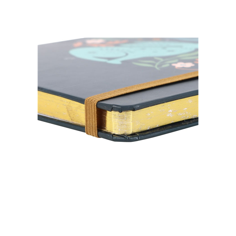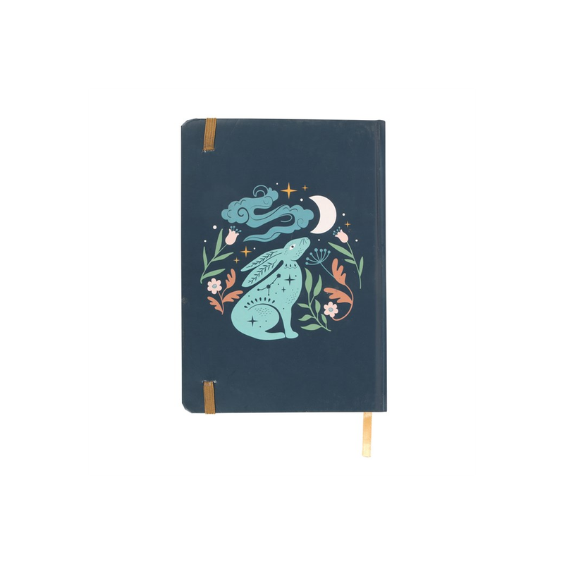 Whether used for notes, lists, or journaling, this beautiful A5 notebook will elevate your desktop with a captivating design of a hare underneath a starry night sky. This notebook is accented by gold foil pages and a gold ribbon marker. Includes 100 sheets / 200 lined pages.