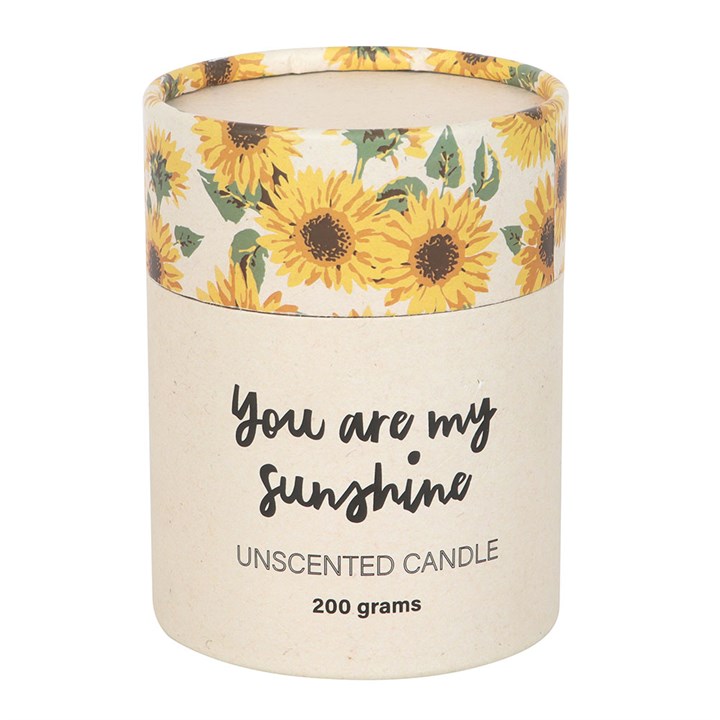 Brighten someone’s day with this beautiful candle, featuring ‘You Are My Sunshine’ text and a stunning 3D wax sunflower. Encased in a glass holder, this decorative unscented candle is packaged in a matching sunflower print box ready for gifting. Approximate burn time of 25 hours. Please practice caution when burning and never leave a lit candle unattended.